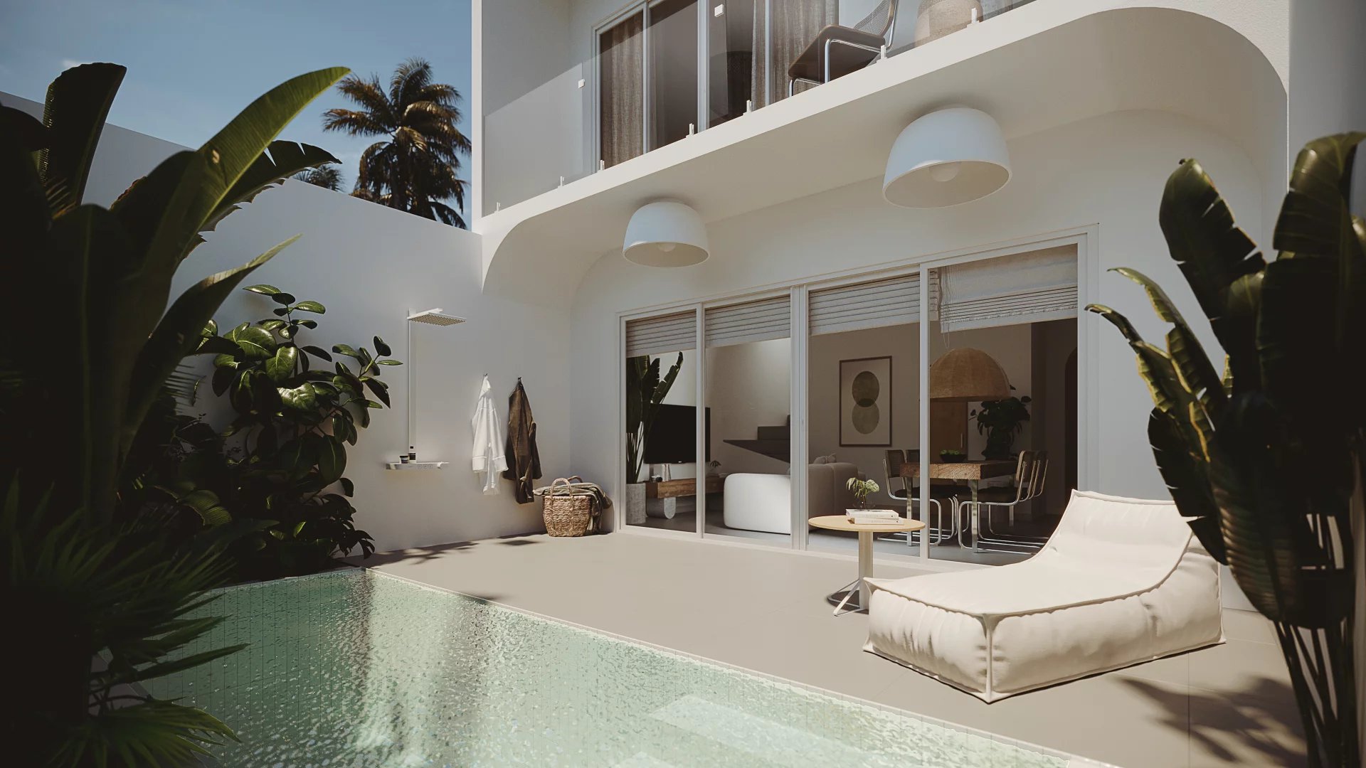 The villas feature a superb swimming pool, ideal for cooling off on sunny Indonesian days. A high-performance air-conditioning system ensures optimum thermal comfort all year round. The contemporary interior design creates a welcoming, restful atmosphere, perfect for relaxation and tranquility.
