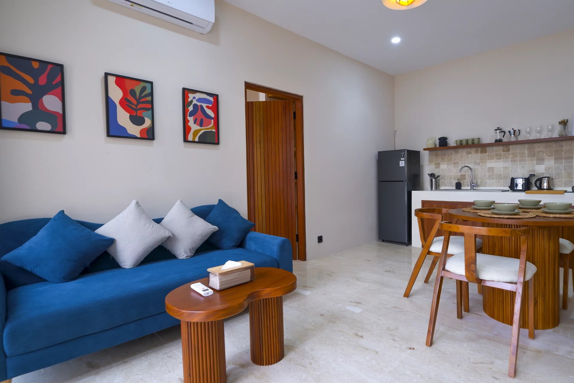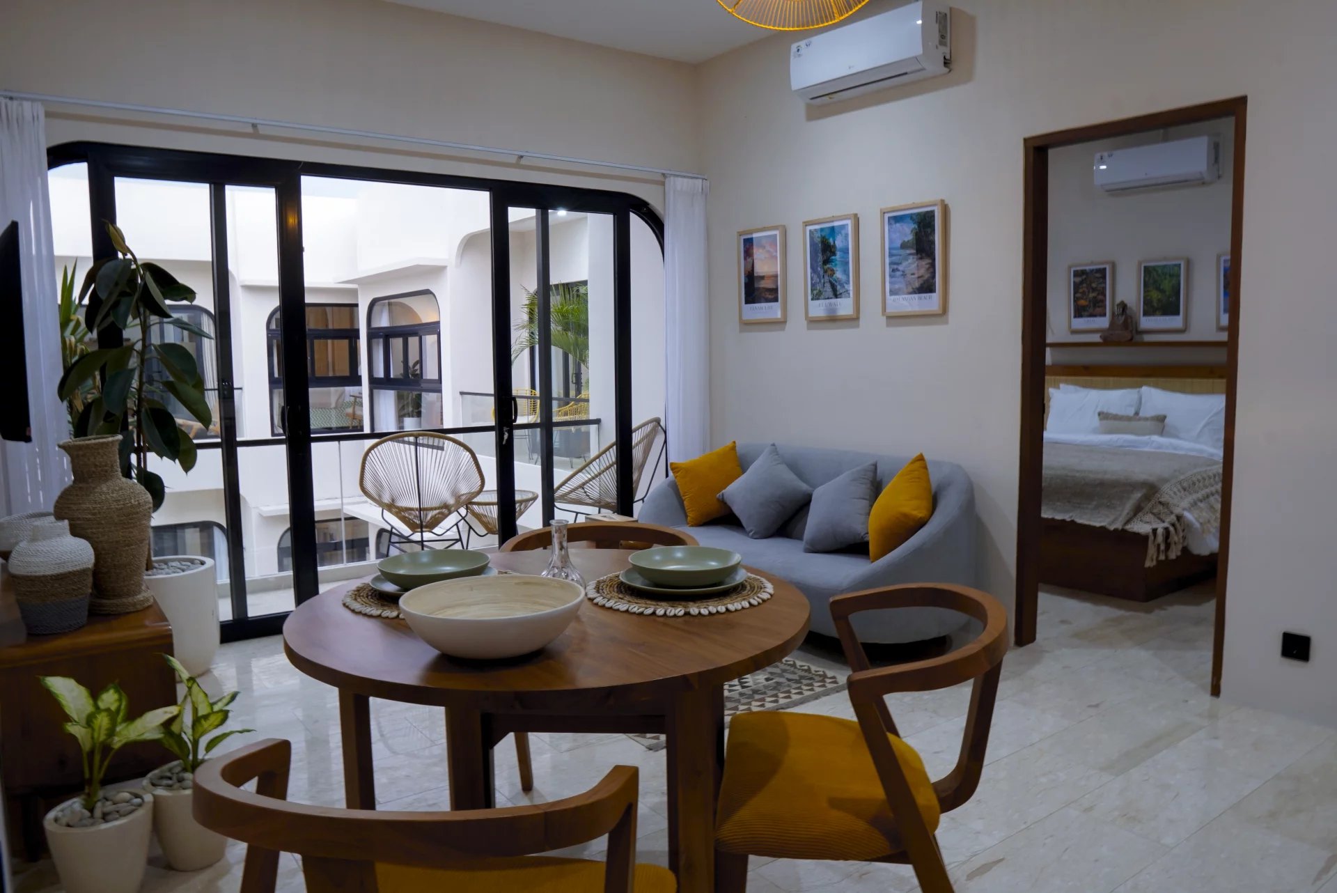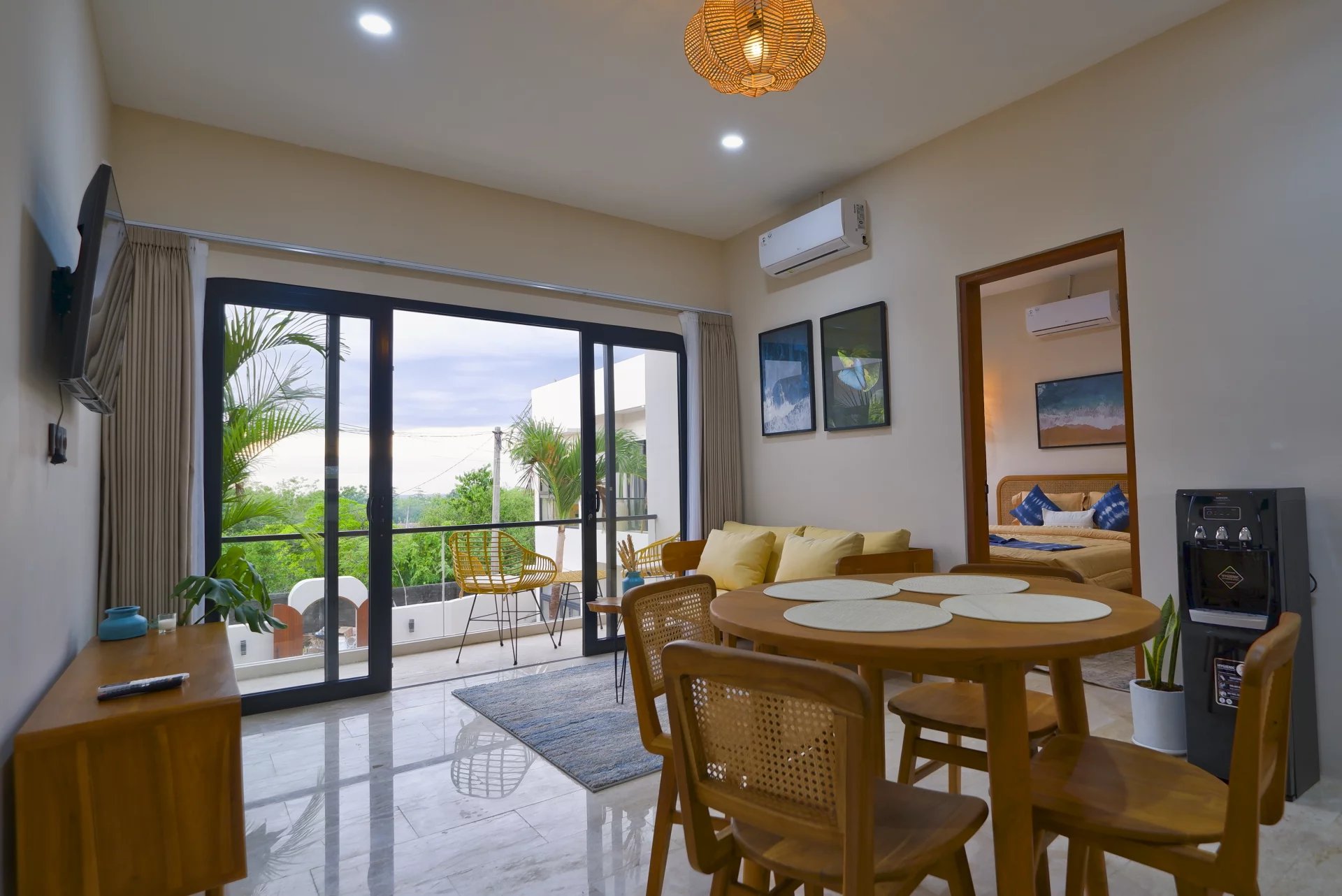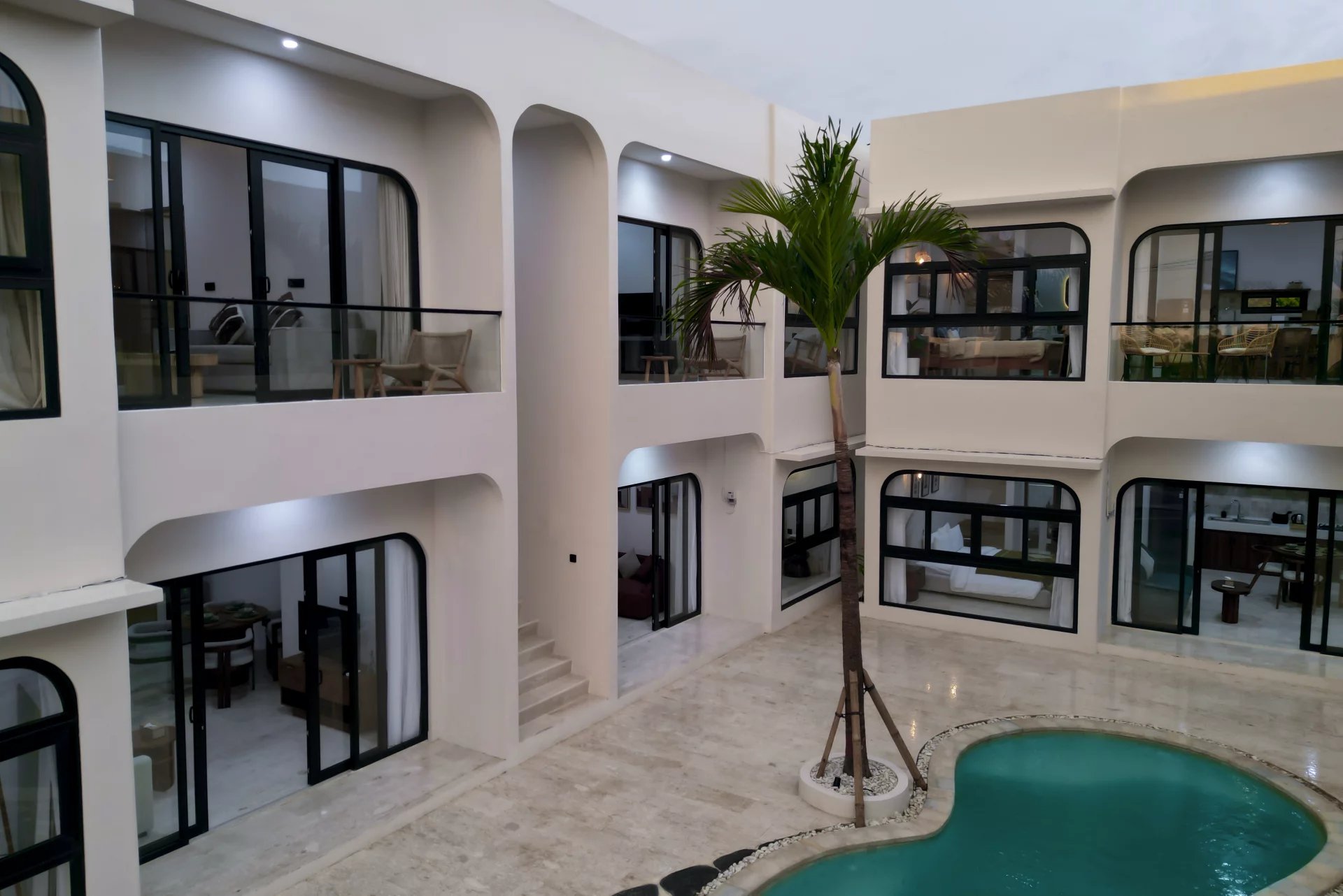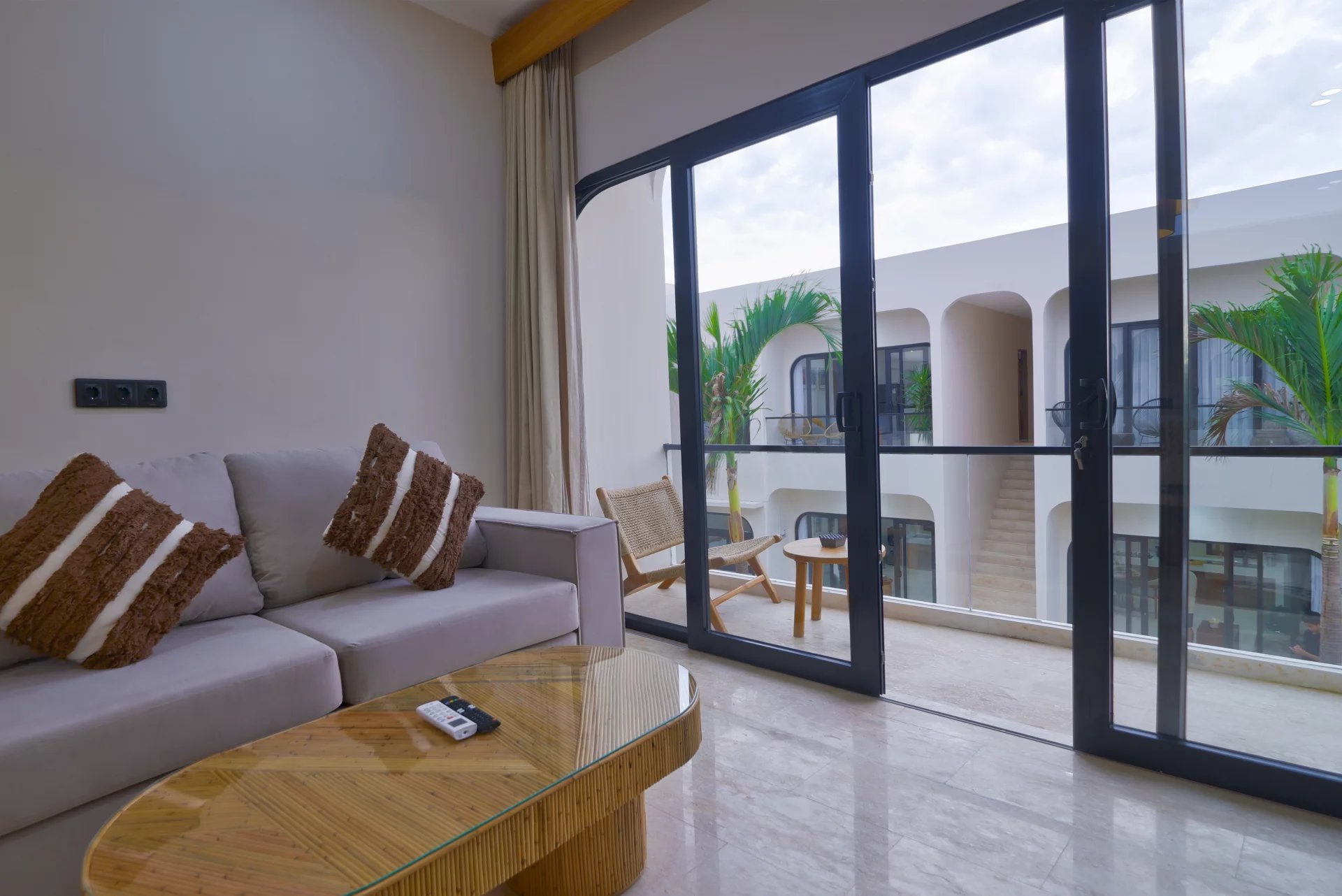 Discover these modern apartments in Balangan, an oasis of tranquility on 50 m². Each with a comfortable bedroom, these living spaces are designed to offer a relaxing and luxurious experience. The large picture windows open onto breathtaking views, bringing natural light and a serene ambience to everyday life.