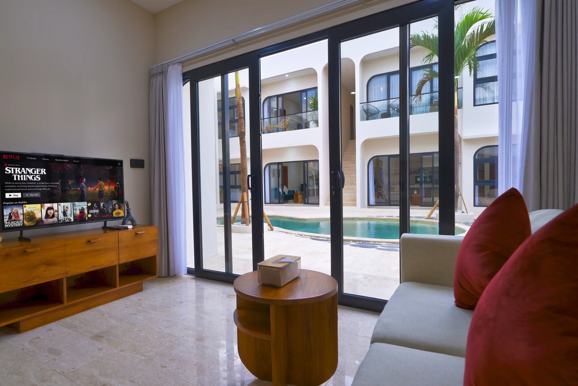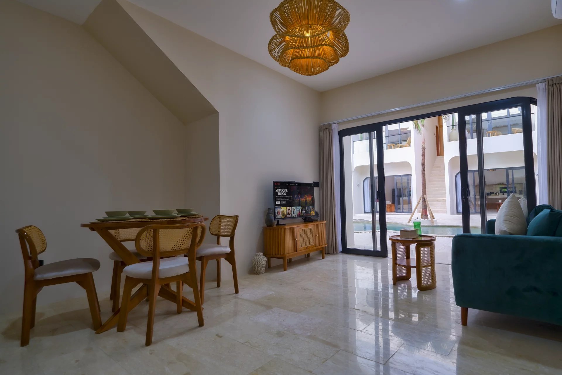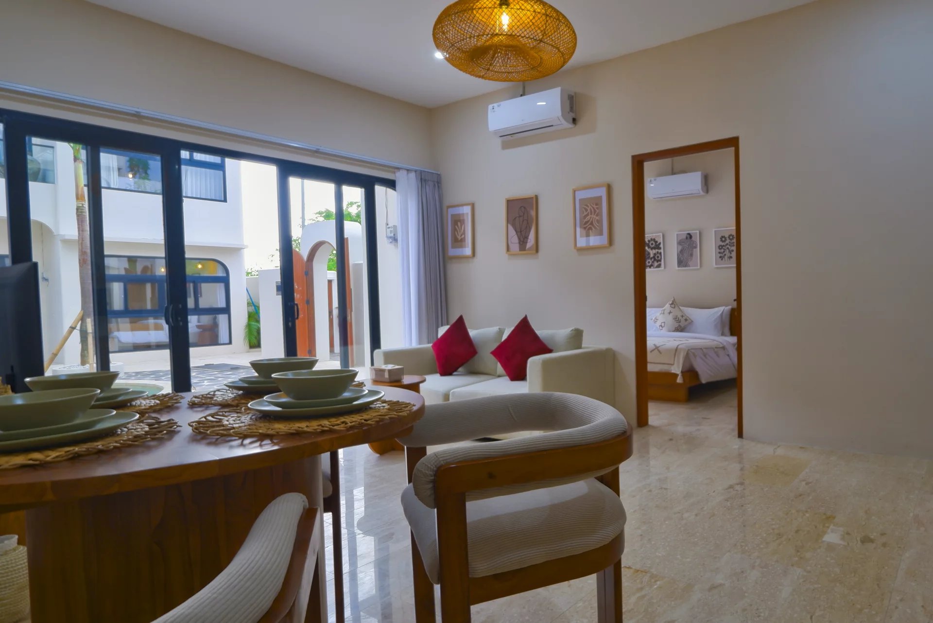 The exterior of the property is equally impressive. The landscaped gardens and shared swimming pool provide an idyllic setting to recharge your batteries or simply soak up the Indonesian sun. Everything here is designed to offer you a pleasant and comfortable lifestyle, in harmony with the surrounding nature.