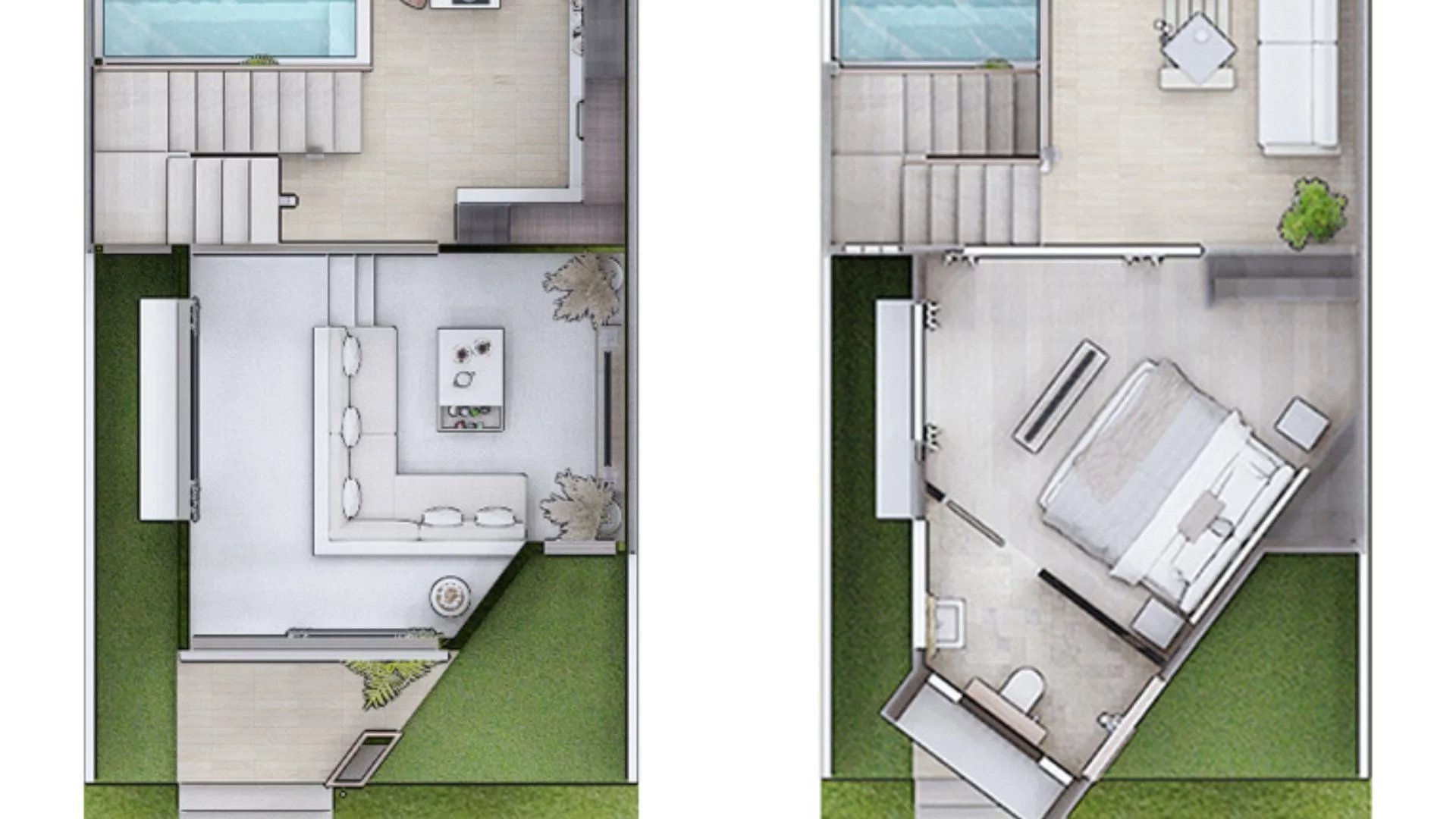 The villa features two spacious bedrooms filled with natural light,a comfortable living room. A private balcony offers relaxing views, while the open-plan layout creates a seamless flow between indoor and outdoor spaces. Outside, a refreshing private swimming pool is surrounded by a tranquil setting, perfect for relaxation or entertaining guests.